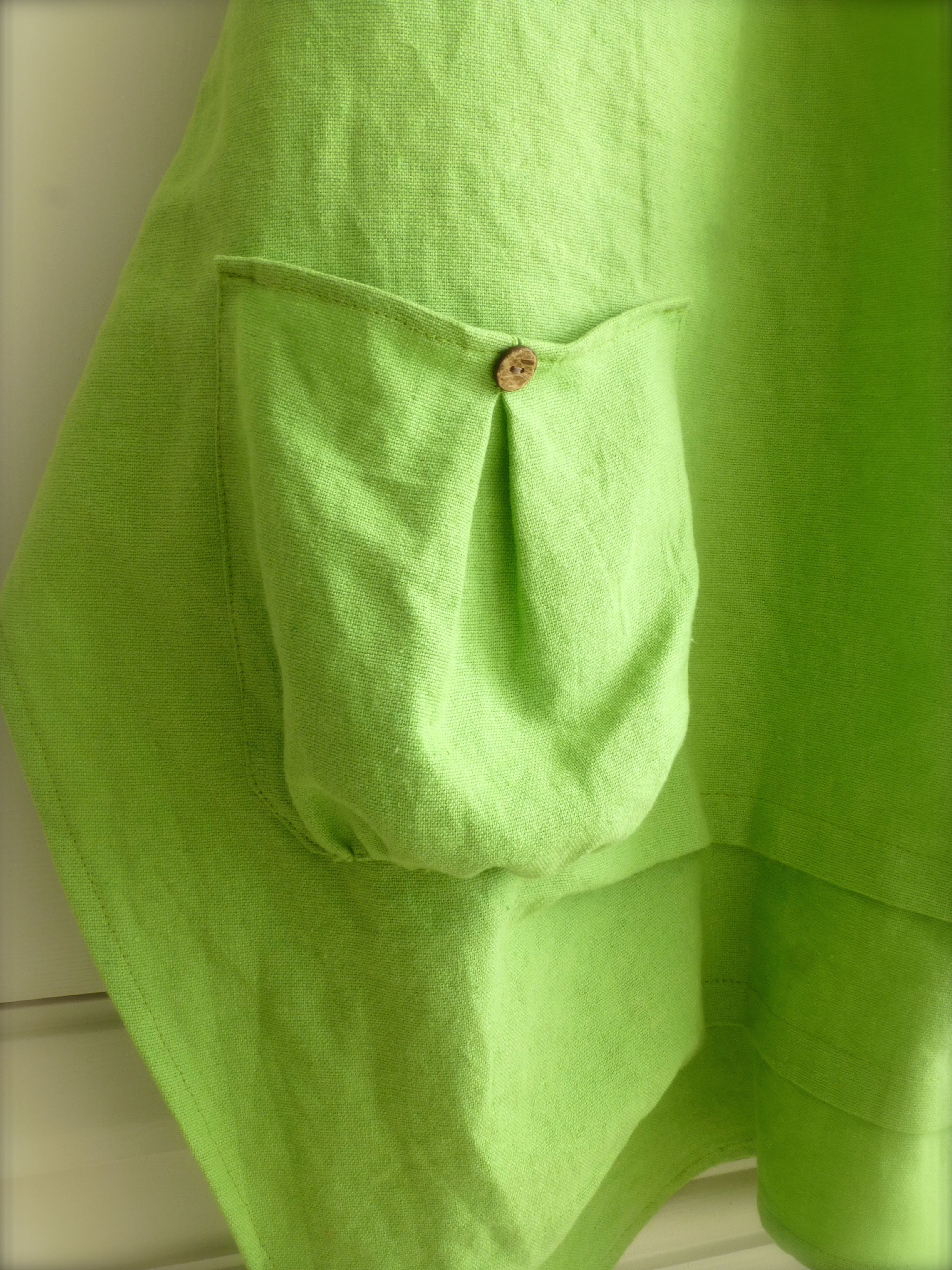 …and I added a gathered pocket at the last minute, matching the style with a pleat and another coconut shell button.